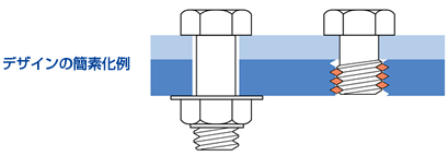 スプリューを使用することによって、おねじの径やハメアイ長さの縮小、重量容積の軽減をもたらし、製品原価の低減、品質の向上に大きく貢献します。